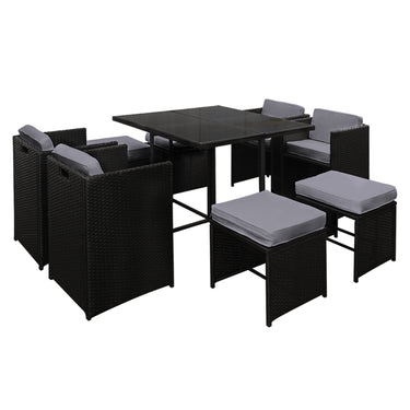 Gardeon 9 Piece Wicker Outdoor Dining Set - Black & Grey